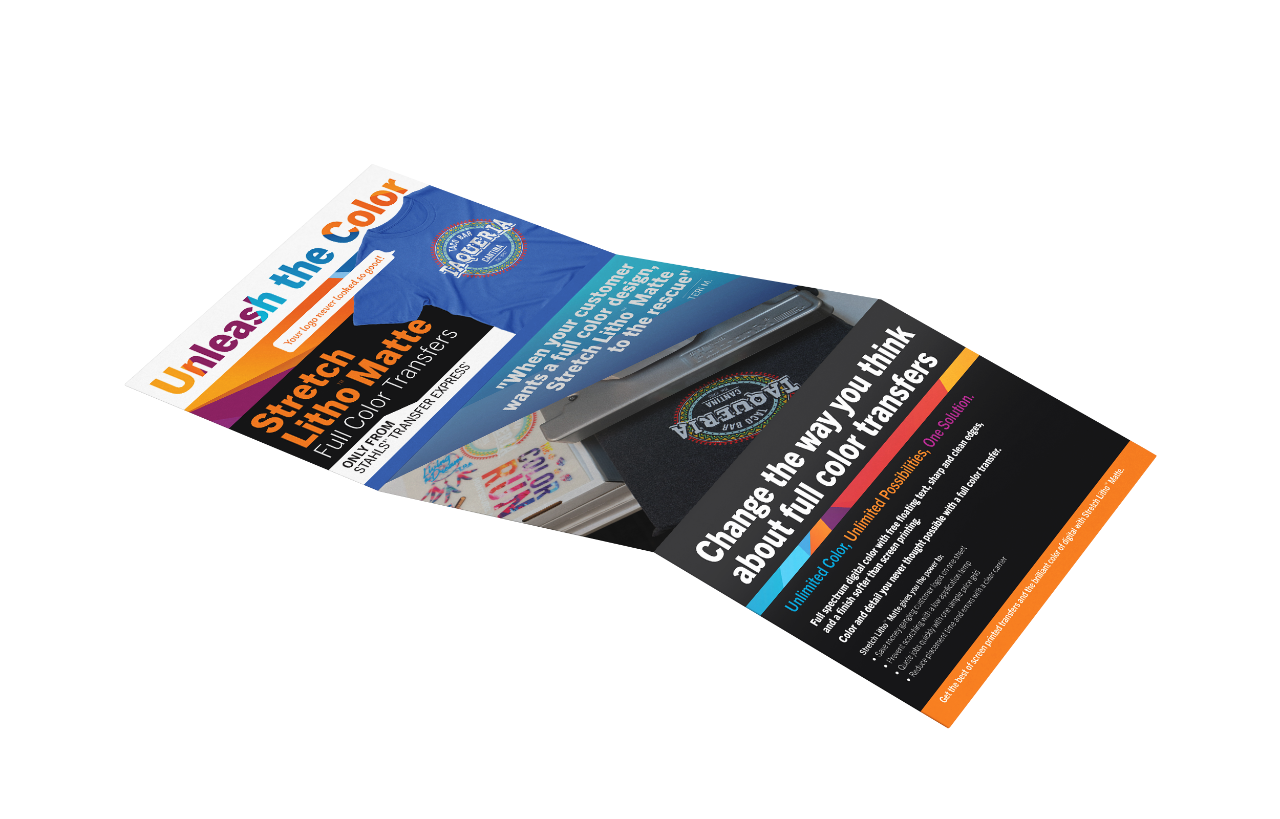 I also acted as Design Lead for sister brand Transfer Express, overseeing a team of designers and directing the creation of quarterly trade show graphics, annual catalogs, and day-to-day social and digital content.